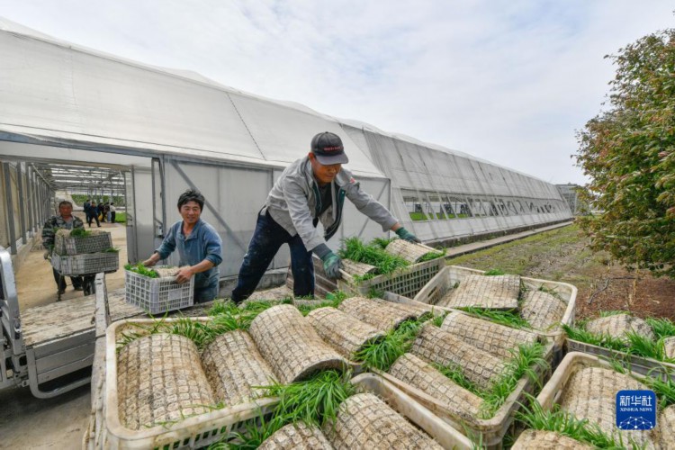 5月5日,在天津市优质农产品开发示范中心,工人将秧苗装车。