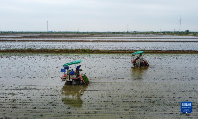 临近立夏节气,天津市各涉农区组织开展大规模机械化水稻插秧,田间地头一派繁忙景象。