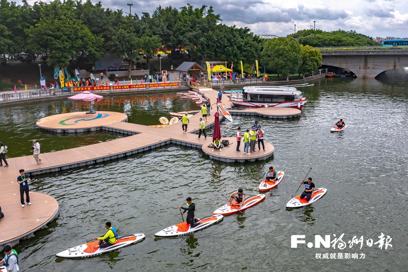 据福州水务集团相关负责人介绍,当天的竞赛项目是500米折返绕标桨板竞速赛,使用充气桨板,分为男子组和女子组,按照用时长短确定名次。