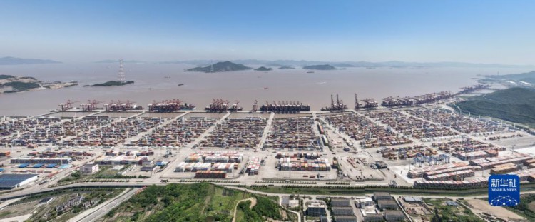 5月9日拍摄的宁波舟山港穿山港区(无人机全景照片)。