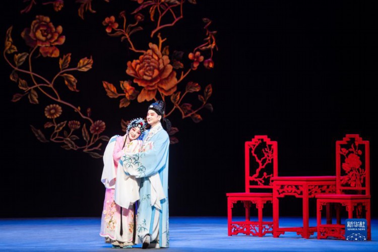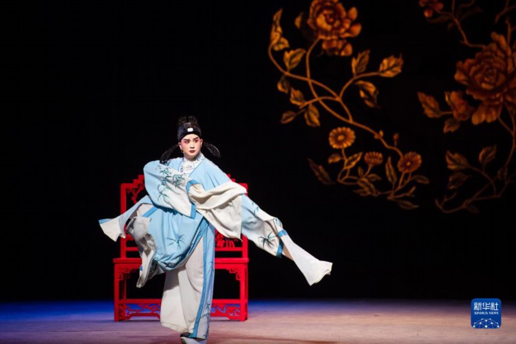 5月15日,演员在舞台上表演黄梅戏《罗帕记》。 当日,第三届全国戏曲(南方片)会演在湖北武汉开幕。会演期间,将有来自上海、江苏、湖北等16个省区市的17台剧目和1台民族地区稀有剧种折子戏专场参加演出。 新华社记者 伍志尊 摄