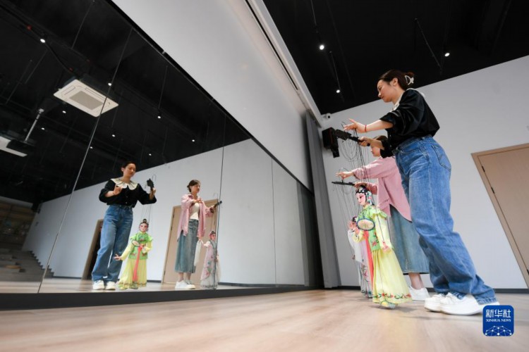 孙菁(右)和施锦芳在苏州市吴江区七都镇一处公园内排练(4月18日摄)。 2023年5月18日是中国昆曲艺术被联合国教科文组织列入世界首批“人类口头遗产和非物质遗产代表作”22周年纪念日。在江苏苏州,有一种特别的昆曲表演形式,它就是昆曲木偶。江苏苏州吴江七都提线木偶,俗称昆曲木偶,采用人偶同台的形式,将昆曲和木偶杂技融而为一,颇具特色。 2004年,苏州市戏校招生昆曲表演班,七都镇把恢复昆曲木偶作为一项工程,正在上中学的孙菁、施锦芳、施晓明经过选拔被录取,先学习昆曲表演,再学习木偶操控。2009年毕业后,他们来到苏州市吴江区七都镇文化站,从事提线昆曲木偶的传承与演出。从艺18年来,三人进行昆曲木偶演出280余场,为7万余人次观众献上精彩表演。 孙菁说:“由于人手少,一些传统剧目已经演不起来了,我们三人正在为建设昆曲木偶活动示范基地四处奔走,希望通过基地的建设,开展昆曲木偶公益演出,吸引更多的年轻人来了解、体验、学习昆曲木偶,一起将昆曲木偶传承下去。” 新华社记者 李博 摄