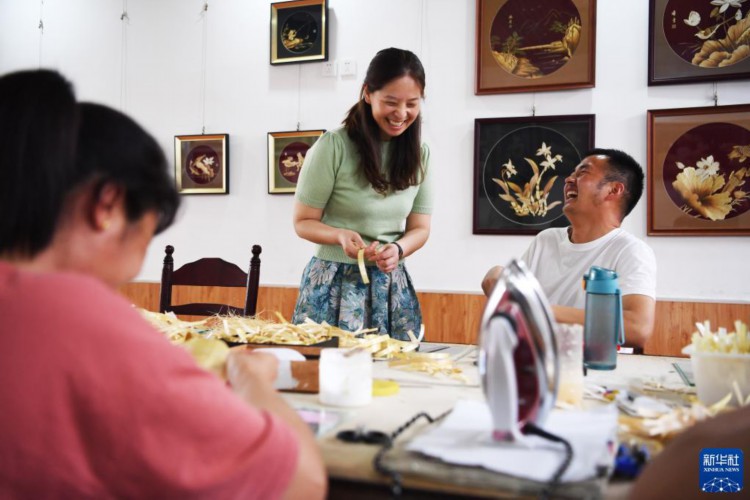 5月16日,谷穗(中)在非遗传习基地和学徒交流。 初夏的风吹过,河南省周口市淮阳区龙湖里的丛丛芦苇随之摇曳。在淮阳区一家非遗传习基地,20岁的张富扬忙着将带有荷花图样的芦苇皮拼贴成片,他的左右手起起伏伏,灯光也随之忽明忽暗。他眼神专注、动作熟练,只有一旁的拐杖,才会让人注意到他腿部的异样。 这个传习基地,源自于“80后”谷穗和丈夫葛磊创办的金穗子芦苇工艺有限公司。谷穗的左臂轻微残疾。夫妻俩祖辈都是芦苇画手艺人,因此结缘后致力于非遗芦苇画的传习、生产、研发和销售。他们就地取材,以芦苇的叶、秆、花穗为原料,经过割、晒、晾、碾、贴等30多道工序精心制作成淮阳芦苇画。他们的作品经常参展并多次获奖。2021年,淮阳芦苇画被评选为河南省非物质文化遗产。 夫妻俩推行残疾人就业项目,每年拿出收入的20%作为传承经费,包吃包住免费向残疾人传授芦苇画手工技艺。据介绍,公司至今累计培训学员9000多人次,已发展成“国家级残疾人非遗传习基地”“国家级残疾人文化创意产业基地”。 除了照顾好传习基地的学员,夫妻俩目前还在琢磨着扩展芦苇画的底色,同时升级画框,让芦苇画适合更多风格的室内场景,扩大销路。 新华社记者 张浩然 摄 |
