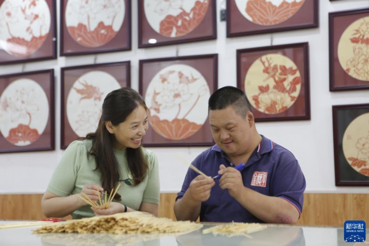 5月16日,谷穗(左)在非遗传习基地与学徒交流。 初夏的风吹过,河南省周口市淮阳区龙湖里的丛丛芦苇随之摇曳。在淮阳区一家非遗传习基地,20岁的张富扬忙着将带有荷花图样的芦苇皮拼贴成片,他的左右手起起伏伏,灯光也随之忽明忽暗。他眼神专注、动作熟练,只有一旁的拐杖,才会让人注意到他腿部的异样。 这个传习基地,源自于“80后”谷穗和丈夫葛磊创办的金穗子芦苇工艺有限公司。谷穗的左臂轻微残疾。夫妻俩祖辈都是芦苇画手艺人,因此结缘后致力于非遗芦苇画的传习、生产、研发和销售。他们就地取材,以芦苇的叶、秆、花穗为原料,经过割、晒、晾、碾、贴等30多道工序精心制作成淮阳芦苇画。他们的作品经常参展并多次获奖。2021年,淮阳芦苇画被评选为河南省非物质文化遗产。 夫妻俩推行残疾人就业项目,每年拿出收入的20%作为传承经费,包吃包住免费向残疾人传授芦苇画手工技艺。据介绍,公司至今累计培训学员9000多人次,已发展成“国家级残疾人非遗传习基地”“国家级残疾人文化创意产业基地”。 除了照顾好传习基地的学员,夫妻俩目前还在琢磨着扩展芦苇画的底色,同时升级画框,让芦苇画适合更多风格的室内场景,扩大销路。 新华社记者 戴翘楚 摄 |