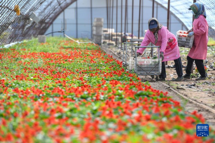 5月23日,在吉林省长春市九台区卡伦湖街道东风村,农民在搬运花卉。 近年来,吉林省长春市九台区卡伦湖街道东风村利用当地种植资源丰富、交通便利等区位优势,积极调整农业产业种植结构,引导农民发展花卉、蔬菜、瓜果等特色种植业,进一步拓宽农民增收致富渠道。 新华社记者 张楠 摄