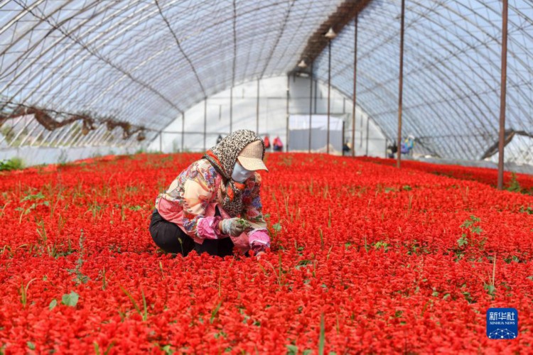 5月23日,在吉林省长春市九台区卡伦湖街道东风村,农民在为花卉除草。 近年来,吉林省长春市九台区卡伦湖街道东风村利用当地种植资源丰富、交通便利等区位优势,积极调整农业产业种植结构,引导农民发展花卉、蔬菜、瓜果等特色种植业,进一步拓宽农民增收致富渠道。 新华社记者 张楠 摄