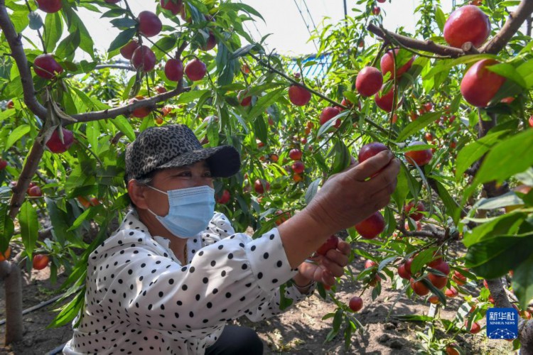 5月23日,在吉林省长春市九台区卡伦湖街道东风村,农民在查看油桃生长情况。 近年来,吉林省长春市九台区卡伦湖街道东风村利用当地种植资源丰富、交通便利等区位优势,积极调整农业产业种植结构,引导农民发展花卉、蔬菜、瓜果等特色种植业,进一步拓宽农民增收致富渠道。 新华社记者 张楠 摄 |