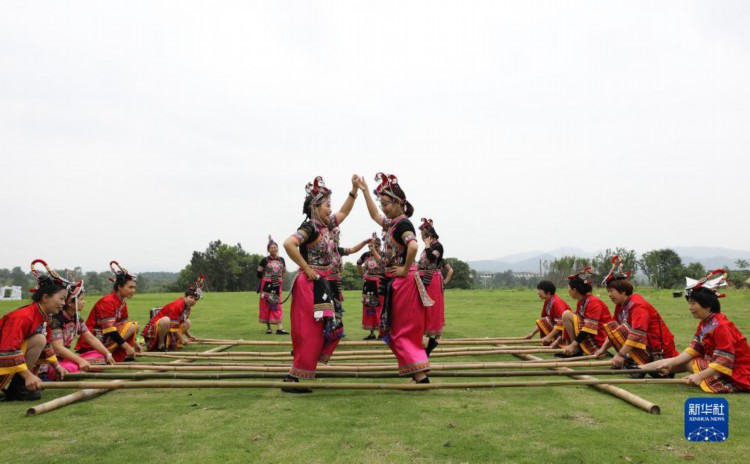 5月24日,在浙江省龙游县浦山村,当地居民表演民族特色节目。 近年来,浙江省衢州市龙游县詹家镇浦山村在深化“千万工程”建设美丽乡村的过程中,基于当地畲族文化打造“七彩畲乡”,用鲜艳的色彩美化村容村貌、改善基础设施,并发展“童话世界、亲子乐园”主题,建设游艺设施和亲子民宿等,在提高当地居民生活条件的同时,吸引游客前来参加亲子游玩项目、体验畲族文化,带动村民增收,助力乡村振兴。 新华社记者 杜潇逸 摄