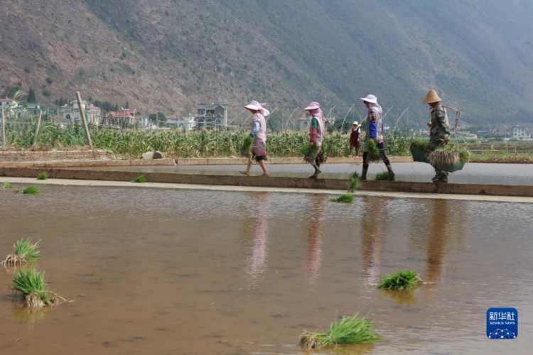 弥泸灌区弥勒市竹园片区的农民准备插秧(5月9日摄)。新华社记者 刘诗平 摄 |