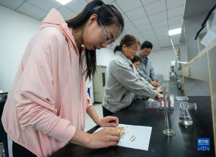 5月25日,在河北沧州渤海新区黄骅市中捷产业园区农科所种子检验室,技术人员在做小麦出芽率实验。