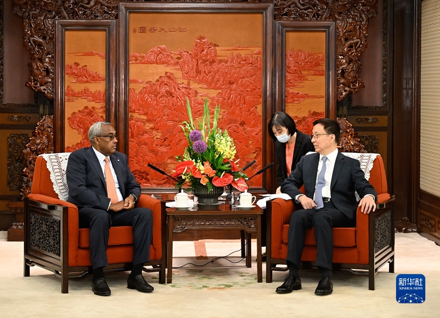韩正说,中国同埃塞俄比亚是全面战略合作伙伴,两国关系发展势头良好,各领域合作成果丰硕,实实在在惠及两国人民。感谢埃塞坚定支持中方维护核心利益,中方同样坚定支持埃塞巩固团结和平、实现经济复苏。中方始终从战略高度和长远角度看待和发展两国关系,愿同埃塞方共同落实好习近平主席提出的系列全球倡议,高质量共建“一带一路”,拓展务实合作,促进文明交流对话,增进民心相通,书写两国关系发展新篇章。