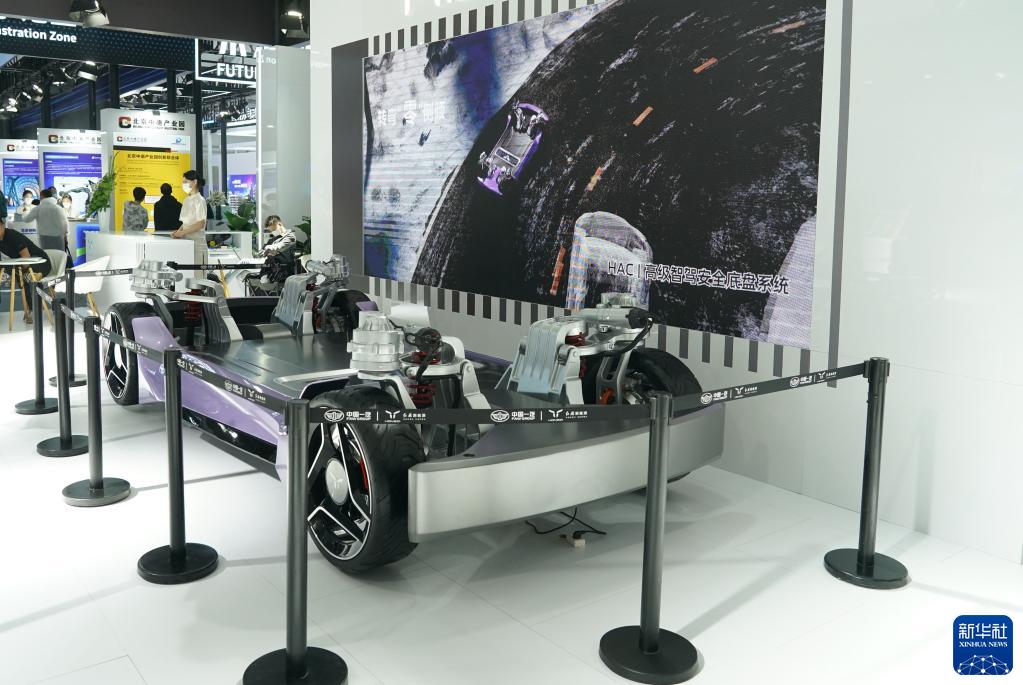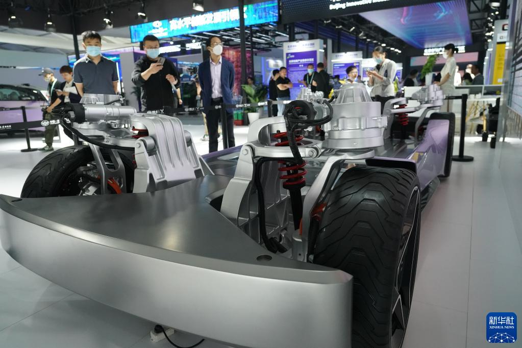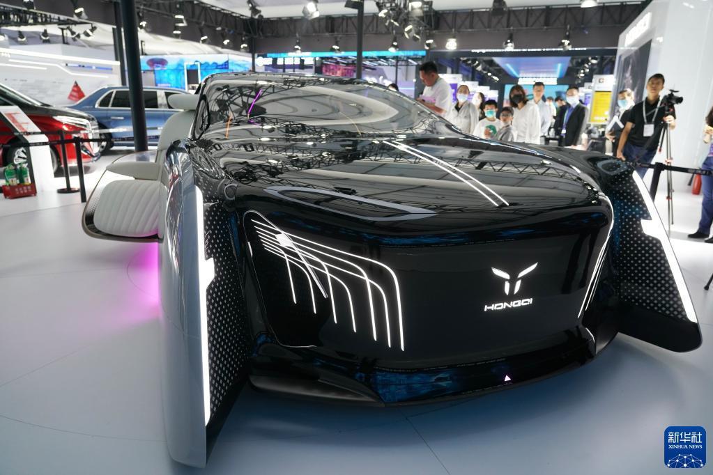 5月27日,在2023中关村论坛展览(科博会)中拍摄的红旗电动平台HME。 在北京举行的中关村论坛展览(科博会)上,新能源汽车及相关产品成为人们关注的焦点。 新华社记者 任超 摄