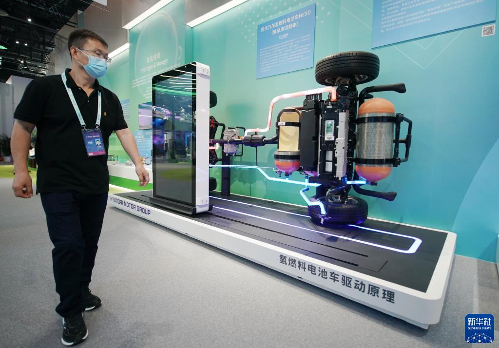 5月27日在中关村国家自主创新示范区展示中心拍摄的现代汽车氢燃料电池车NEXO(展示用切割车)。 在北京举行的中关村论坛展览(科博会)上,新能源汽车及相关产品成为人们关注的焦点。 新华社记者 张晨霖 摄