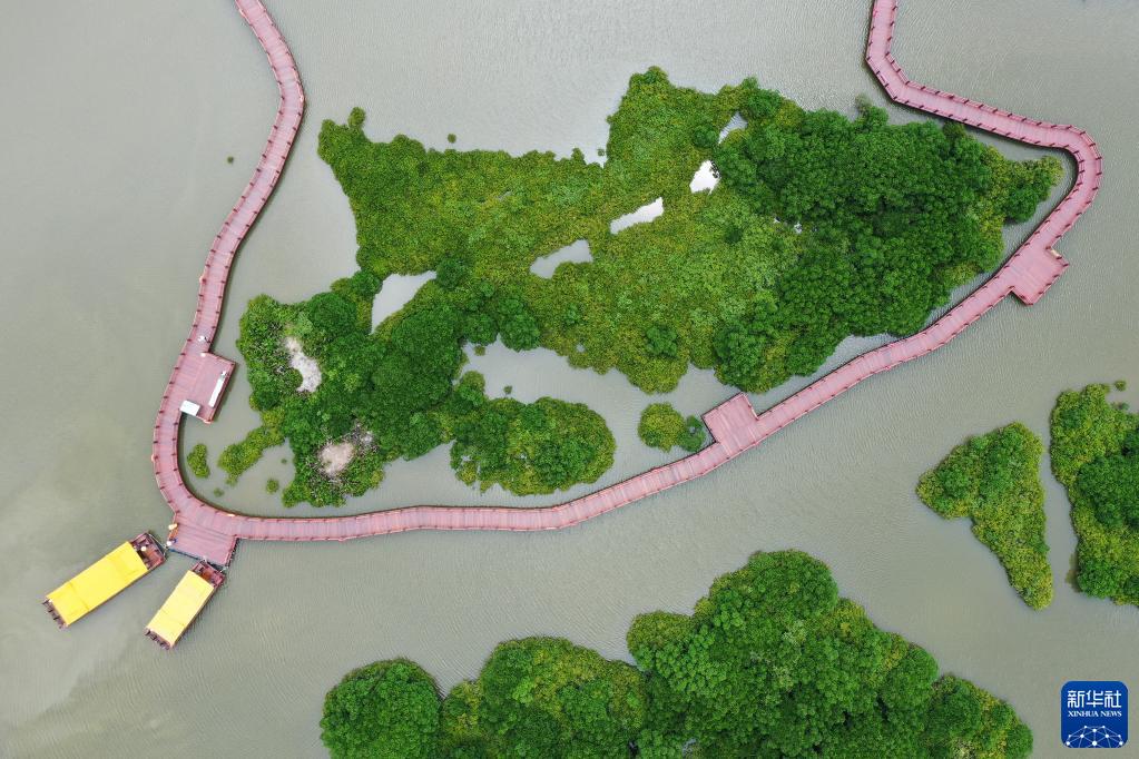广东省湛江市蜿蜒绵长的海岸线上分布着大量红树林,占全国红树林总面积的33%。“红树林之城”湛江坚持绿色发展,保护红树林,展现生态和谐之美。
