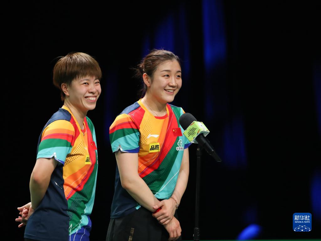 当日,在南非德班进行的2023年世界乒乓球锦标赛女子双打决赛中,中国选手陈梦/王艺迪以3比0战胜韩国选手田志希/申裕斌,夺得冠军。