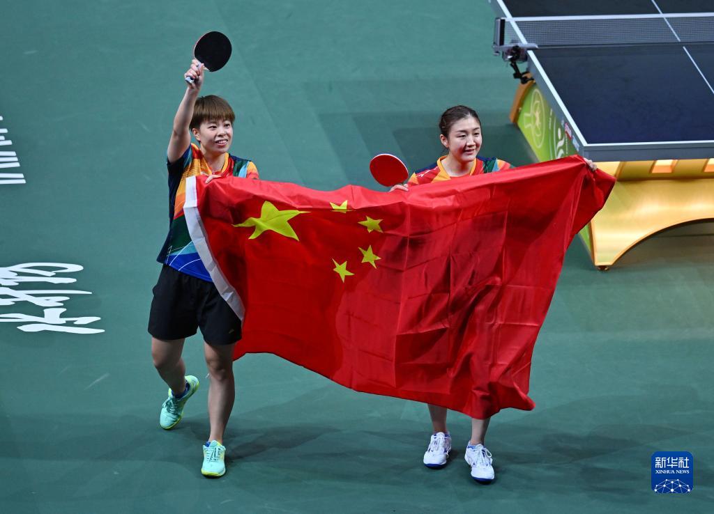 当日,在南非德班进行的2023年世界乒乓球锦标赛女子双打决赛中,中国选手陈梦/王艺迪以3比0战胜韩国选手田志希/申裕斌,夺得冠军。