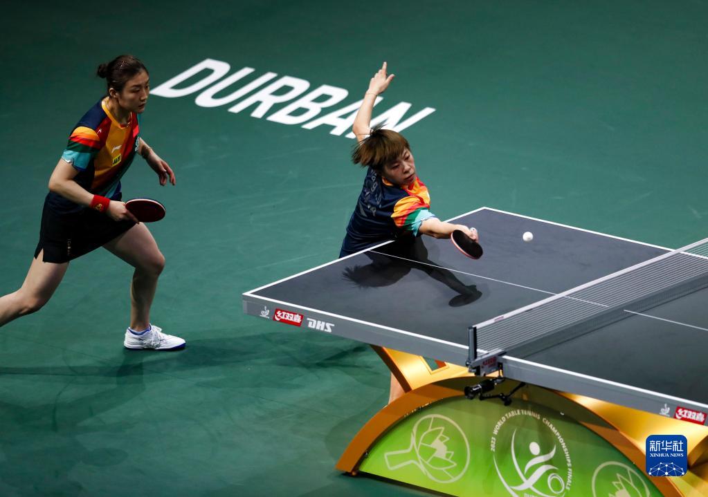 当日,在南非德班进行的2023年世界乒乓球锦标赛女子双打决赛中,中国选手陈梦/王艺迪以3比0战胜韩国选手田志希/申裕斌,夺得冠军。