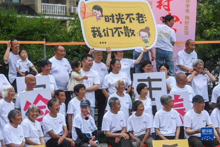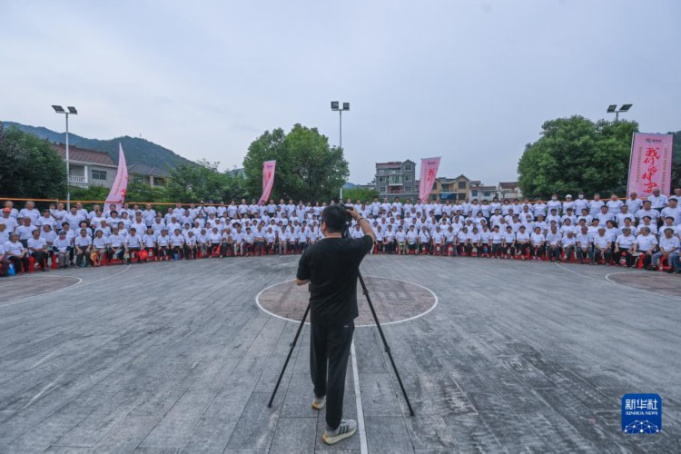 5月27日,梅坪村的村民拍摄首张“全村福”。 5月27日,浙江省建德市新安江街道梅坪村的文化中心落成并投入使用,也开启了该村首届梅好未来共富节暨“全村福·我们的村宴”活动。梅坪村近400位村民拍摄完成了村史上首张“全村福”,并聚在一起看演出,吃百家宴,聊聊村中家中的新变化新发展。 近年来,梅坪村坚持“党建领航、富民强村”的工作思路,充分发挥地理位置和产业优势,先后完成了梅坪村村企共富服务中心、村级共富工坊、梅好未来乡村发展有限公司的建设,让村民凝心聚力,齐心绘就村美、业兴、人和的共富美好画卷。 新华社记者 徐昱 摄