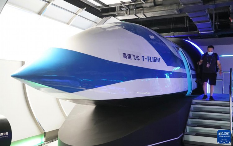 5月30日在科幻产业新技术新产品展现场拍摄的“高速飞车”。