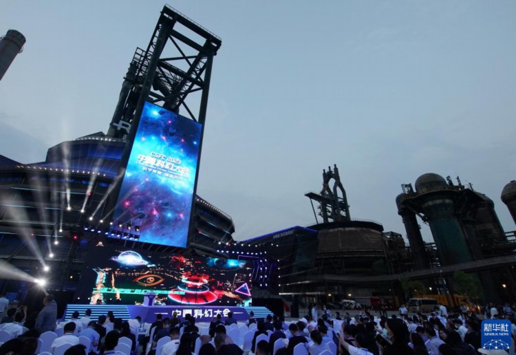 这是5月29日在北京首钢园拍摄的2023中国科幻大会开幕式现场。