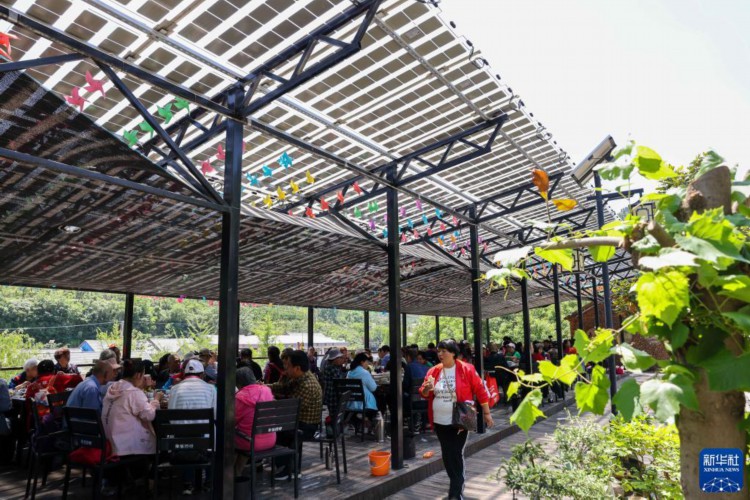 5月31日,游客在燕崖镇朱家户村光伏餐厅就餐,体验“零碳”乡村旅游项目。