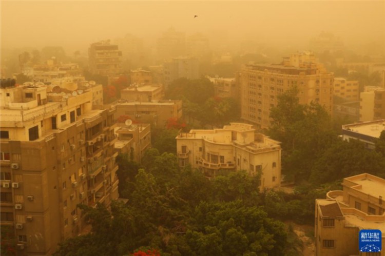 6月1日,埃及开罗笼罩在沙尘中。新华社记者 隋先凯 摄 当日下午,埃及首都开罗遭遇沙尘暴袭击,城市笼罩在漫天黄沙中,能见度较差。