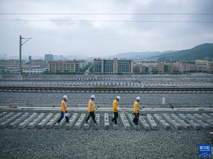 金甬铁路位于浙江省中东部地区,工程范围为沪昆铁路义乌站至甬台温铁路云龙站,新建正线全长约188.3公里。目前,金甬铁路正在施工建设中。为确保金甬铁路安全顺利通车运行,由宁波工务段铁路工人组成的金甬铁路提前介入组对金甬铁路已建成的桥梁、隧道等进行检测,排除安全隐患。