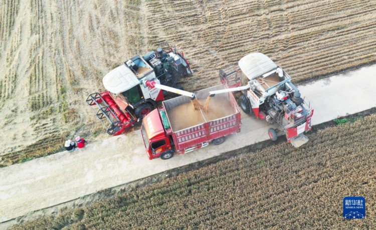 当日,在河南省驻马店市上蔡县,当地抓住晴好天气抢收小麦。新华社记者 张浩然 摄
