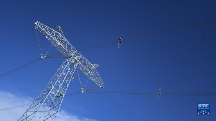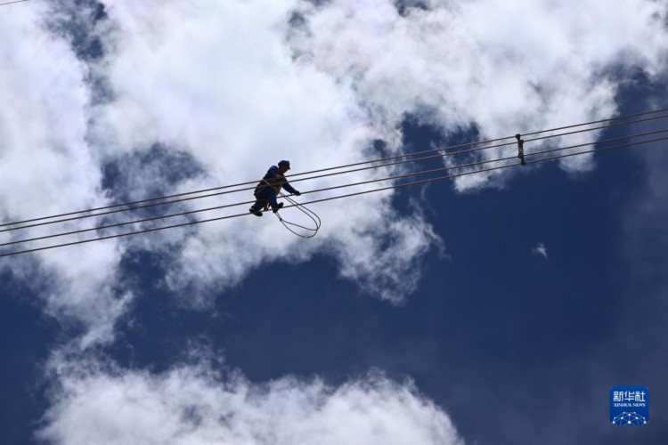 在青海省海西蒙古族藏族自治州格尔木市唐古拉山镇境内,检修人员在走线巡检中(6月3日摄)。 5月底,被誉为“电力天路”的青藏联网工程迎来年度集中检修,超过420人将在15天内完成608公里的输电线路及柴达木换流站的检修工作。在平均海拔超过4500米的长江源头腹地,检修人员克服高寒缺氧的环境,在云端走线巡检,成为“电力天路”一道独特的风景。自2012年起,国家电网青海省电力公司每年对青藏联网工程开展年度集中检修,对设备进行全方位“体检”和“诊疗”,以保障连接西藏的能源通道安全平稳运行。截至目前,青藏联网工程已累计向西藏输送电量超过105亿千瓦时,为西藏经济社会高质量发展提供了可靠的能源保证。 新华社记者 张宏祥 摄