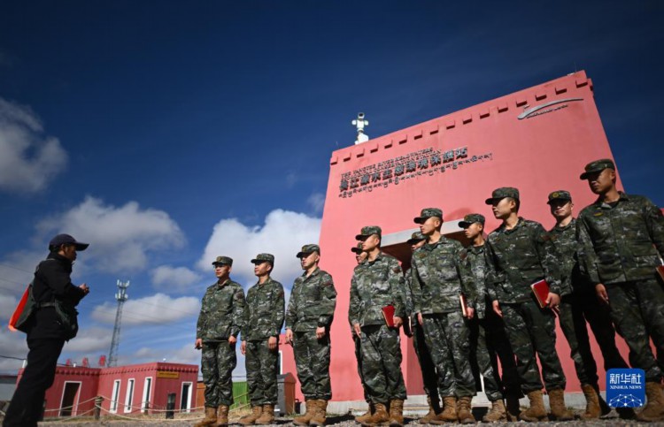 6月4日,武警青海总队海西支队官兵在“守卫长江源”主题党日活动中。 当日,在青海省海西蒙古族藏族自治州格尔木市唐古拉山镇,武警青海总队海西支队官兵在长江源沱沱河开展“守卫长江源”主题党日活动。 新华社记者 张宏祥 摄