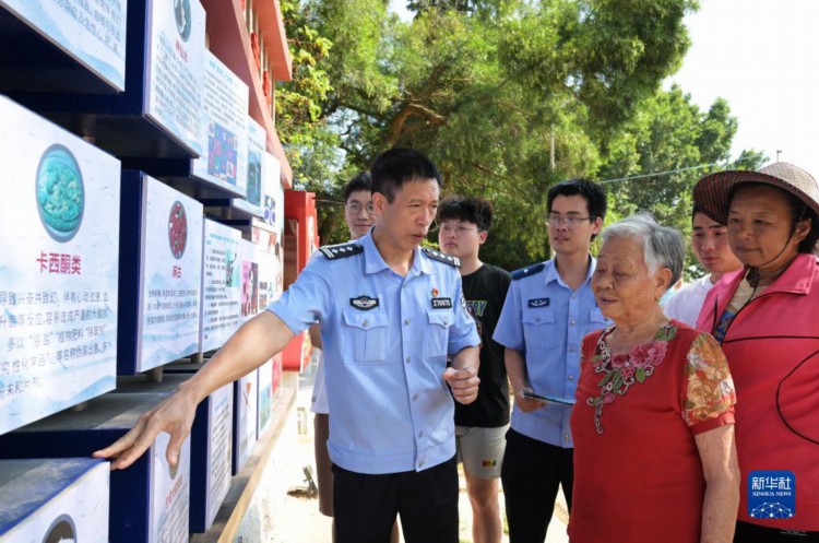 6月4日,在厦门市翔安区大宅社区,民警向社区群众介绍毒品的性质、种类、危害及防范措施。 6月是全民禁毒宣传月。连日来,厦门市翔安区禁毒办民警来到社区开展禁毒宣传活动。 新华社记者 魏培全 摄 |