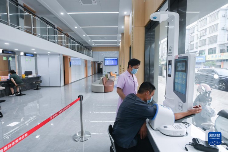 6月7日,在诸暨市安华镇卫生院刚改建完成的健康服务中心内,居民在进行体检。