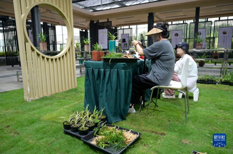 6月8日,在浙江省绍兴市柯桥区漓渚镇棠棣村的兰花数字工厂,一位游客观看花卉。新华社记者 才扬 摄
