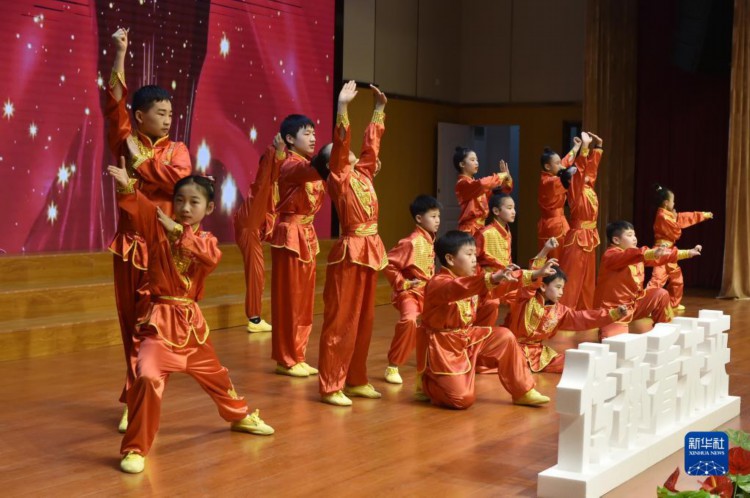 6月8日,学生们在活动现场表演武术。