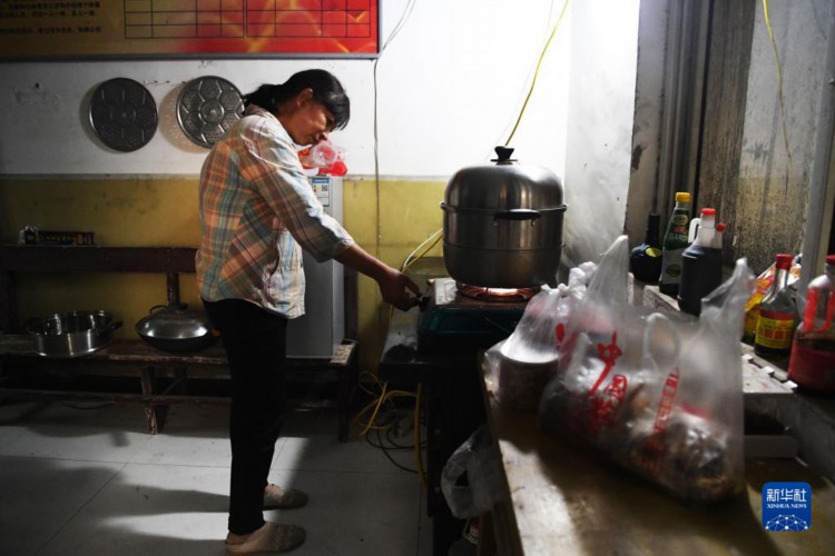6月7日,在滑县枣村乡袁营村村委,村民在给抢收麦子的人做饭。
