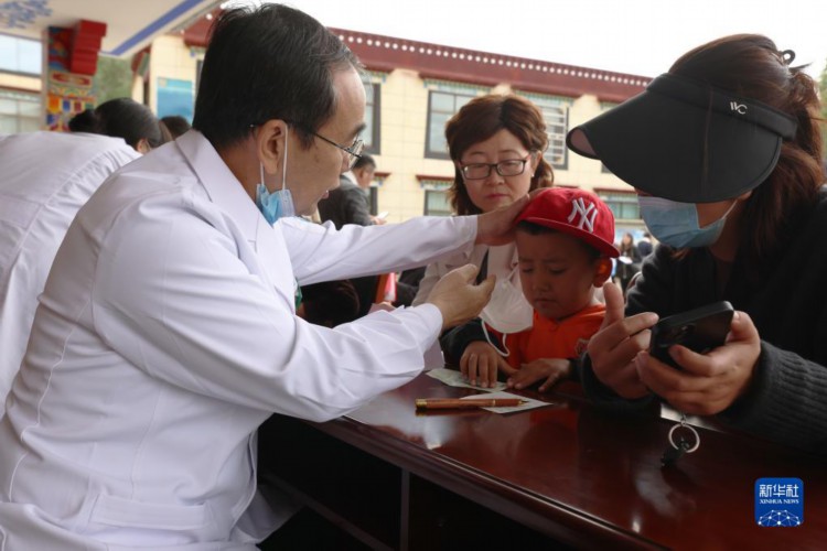 6月13日,医疗专家组为市民做检查。 当日,来自北京、上海、西安的10余名医学专家来到拉萨,就当地市民存在的多发病、常见病等提供现场诊治和用药知识讲解,开展健康检查义诊服务,同时为西藏自治区相关医院和基层医疗卫生机构捐赠医疗设备与保健产品。 新华社记者 卢烨 摄