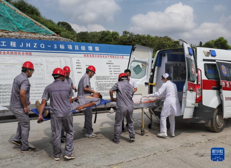 6月13日,中铁四局应急救援队演练将“受困人员”从隧道坍塌现场救援至安全区域并送医抢救。 当日,广东省铁路建设投资集团联合中铁四局在揭(阳)惠(来)铁路新锡隧道开展隧道坍塌应急演练。演练场景设定为中铁四局承建的新锡隧道进口掌子面拱顶围岩坍塌,造成作业人员被困,项目部立即启动应急预案开展救援的过程。 新华社记者 刘大伟 摄