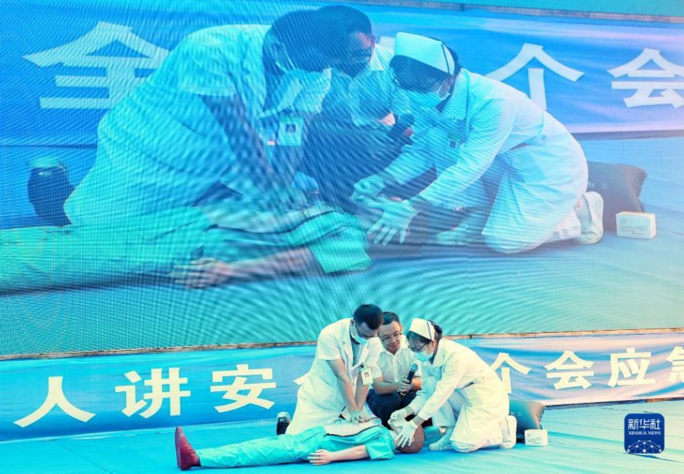 6月13日,医护人员进行急救知识演示讲解。 当日,广东省铁路建设投资集团联合中铁四局在揭(阳)惠(来)铁路新锡隧道开展隧道坍塌应急演练。演练场景设定为中铁四局承建的新锡隧道进口掌子面拱顶围岩坍塌,造成作业人员被困,项目部立即启动应急预案开展救援的过程。 新华社记者 刘大伟 摄 |