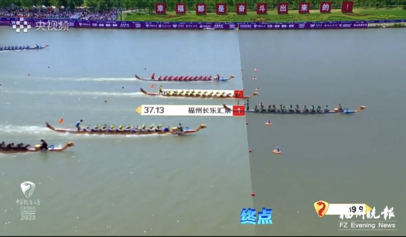 长乐汇泉龙舟队在比赛中。央视视频截图