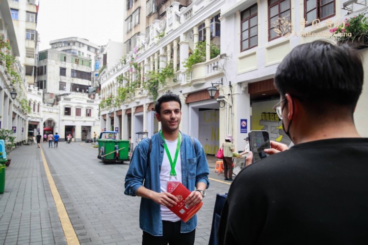 “中国有约”采访团走访骑楼老街,街道两旁颇具特色的建筑引人注目