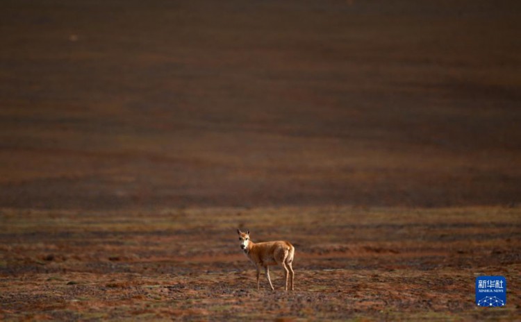 一只藏羚羊在可可西里卓乃湖区域活动(6月17日摄)。