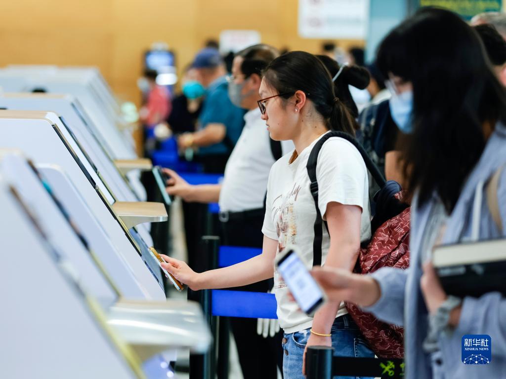 6月21日,在成都天府国际机场,成都海关关员(右)指导一名外国旅客使用自助申报机进行出境健康申报。 第31届世界大学生夏季运动会将于7月28日在成都开幕。为做好大运会通关保障工作,海关总署提前制定《第31届世界大学生夏季运动会通关须知》,将于近期发布,为成都大运会人员、物资的通关监管保障提供指引。为了应对即将到来的进出境人员高峰,成都海关加强“智慧海关”建设,持续提升成都天府国际机场通关体验。据了解,大运会期间,成都海关将设置大运会海关专用通道、进出境物资和货物报关专用窗口和查验专用通道,优先办理海关业务。 新华社记者 沈伯韩 摄