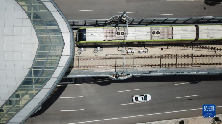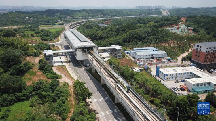 6月28日,列车驶进长株潭城际轨道交通西环线一期工程的高架站点双湖站(无人机照片)。 当日,由中国铁建铁四院总体总包设计、中铁十一局参建的长株潭城际轨道交通西环线一期工程开通运营。这是湖南省首条跨市城市轨道交通线路,开通后长沙和湘潭之间的通勤时间将缩短至20分钟左右。该线路途经湘潭市雨湖区和长沙市岳麓区,全线呈南北走向,全长17.29公里,设站8座,开通后联通长沙地铁3号线,方便两市市民跨市出行,对优化城市空间布局、支撑湘江西岸发展、推进长株潭一体化发展具有重要意义。 新华社记者 陈泽国 摄