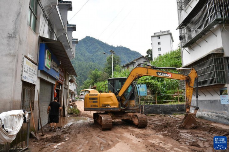 7月2日,在湖南省湘西土家族苗族自治州古丈县岩头寨镇草潭村,村民驾驶挖掘机清理淤泥。 6月29日以来,湖南省湘西土家族苗族自治州遭遇今年入汛以来最强降雨过程,湘西州的古丈、保靖、永顺三个县不同程度受灾。目前洪水逐渐消退,受灾地区正组织干部群众抢险救灾,努力保障受灾群众基本生活需求。 新华社记者 陈振海 摄