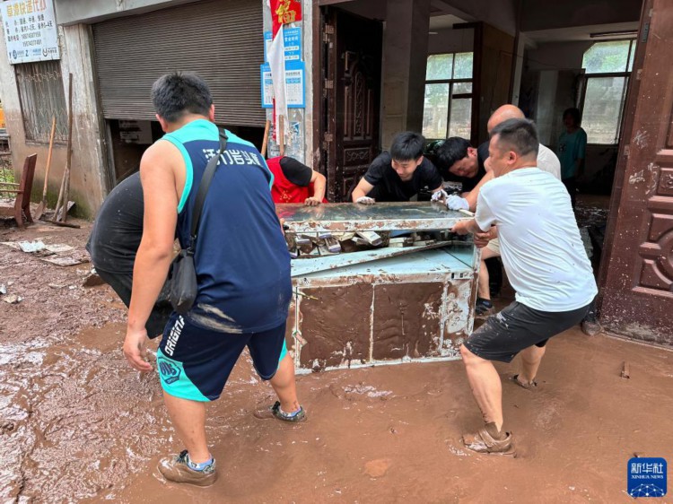 7月2日,在湖南省湘西土家族苗族自治州古丈县岩头寨镇草潭村,志愿者协助村民清理家中受损家具。 6月29日以来,湖南省湘西土家族苗族自治州遭遇今年入汛以来最强降雨过程,湘西州的古丈、保靖、永顺三个县不同程度受灾。目前洪水逐渐消退,受灾地区正组织干部群众抢险救灾,努力保障受灾群众基本生活需求。 新华社记者 谢奔 摄