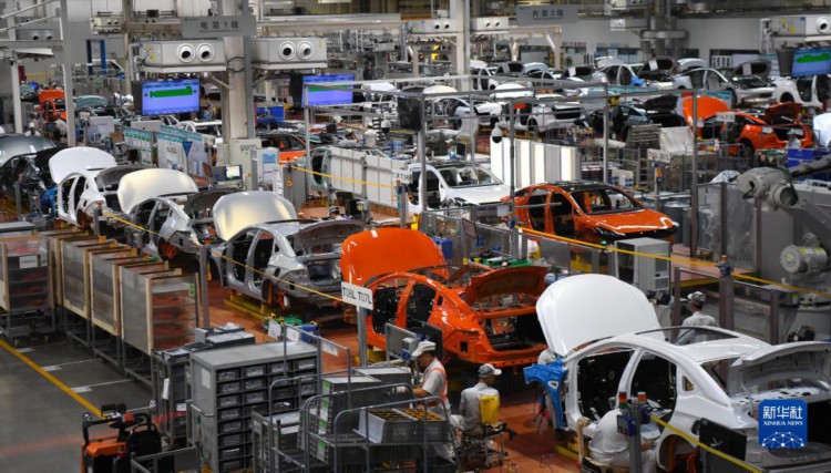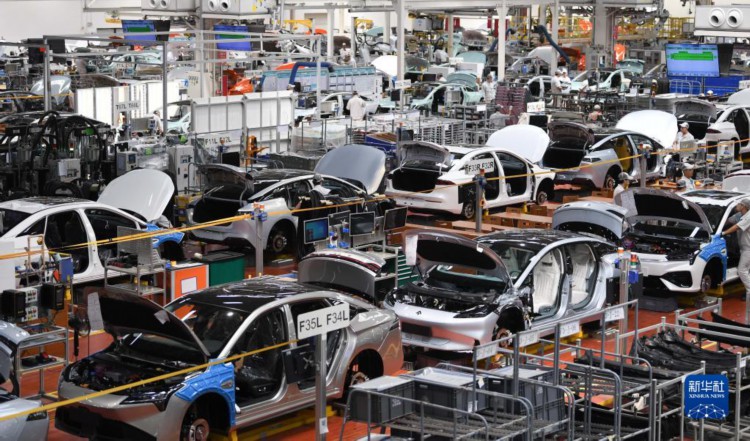 这是7月3日拍摄的广州广汽埃安第一智造中心新能源汽车总装车间生产线。