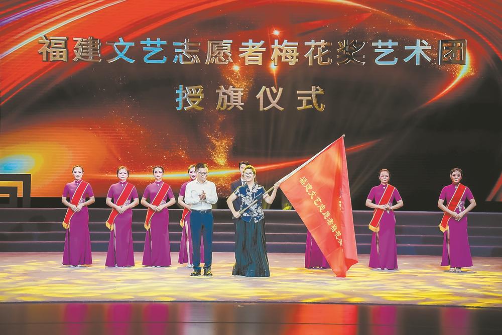 1日,省文联向福建文艺志愿者梅花奖艺术团授旗。省剧协供图