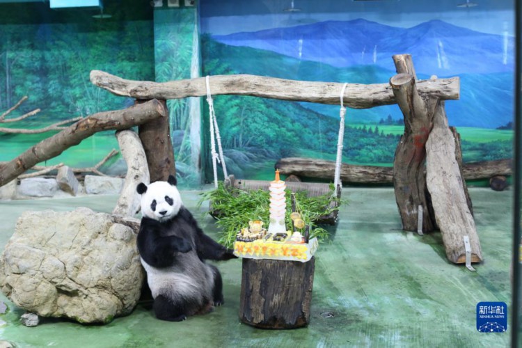 7月6日,在台北市动物园,大熊猫“圆仔”准备品尝“生日蛋糕”。 当日,台北市动物园为大陆赠台大熊猫“团团”和“圆圆”的女儿“圆仔”庆祝10周岁生日。 新华社记者 陈君 摄