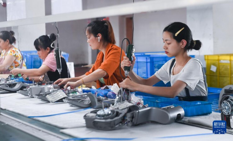 7月6日,工人在位于慈溪市的宁波荣电电器制造有限公司生产电风扇。