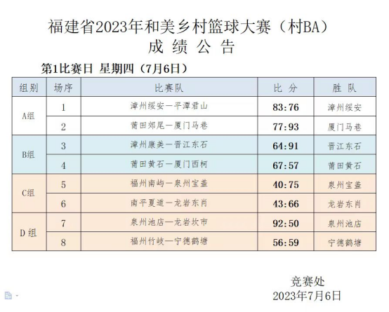 首日比赛其他队伍比赛结果如下,来自石狮的宝盖镇同样获胜,泉州三队齐齐获胜。
